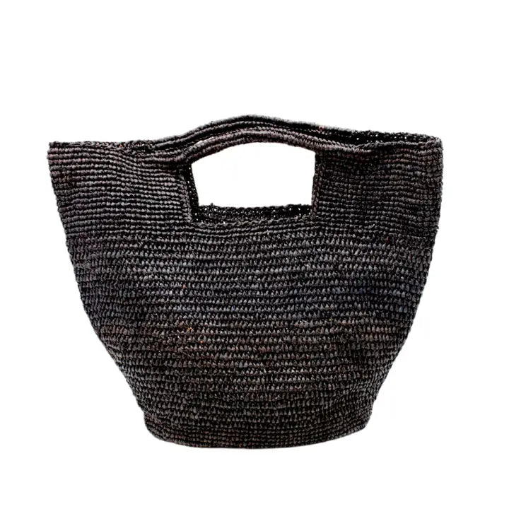 This exquisitely crafted handbag simplifies life with its effortless design. Made of hand-crocheted raffia, it exudes natural sophistication and elegance. Perfect for all sorts of travels, it easily fits into luggage or day bag. Whether for shopping, carrying books, or as a purse, or in the home, this basket is the perfect thing. Dimensions: 18”x7”x13"