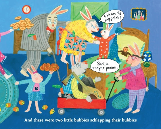 This zesty parody of one of America’s favorite picture books offers a very different bedtime routine: one that is full of family exuberance and love. Instead of whispers of “hush,” this bedtime includes dancing and kvelling, and of course, noshing—because this little bunny is a Jewish bunny, and this joyous book celebrates the Jewish values of cherishing your loved ones, expressing gratitude, and being generous.