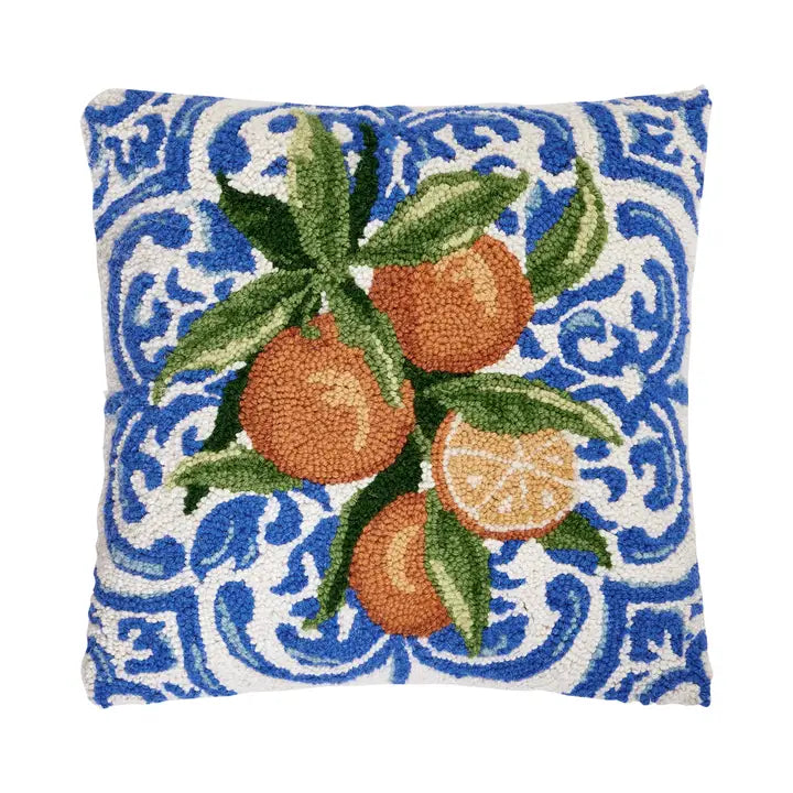 ★100% wool hooked accent pillow ★100% polyester velvet backing ★Includes polyester insert, zipper closure ★16X16" throw pillow