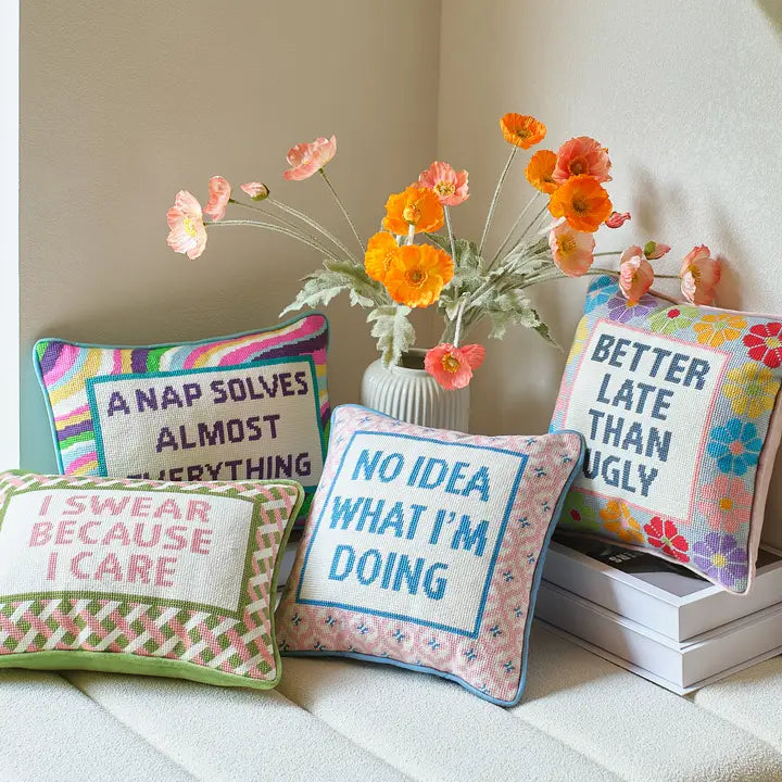 ★100% embroidered needlepoint pillow ★100% poly & cotton velvet ★12x12" throw pillow ★Blown in Filled