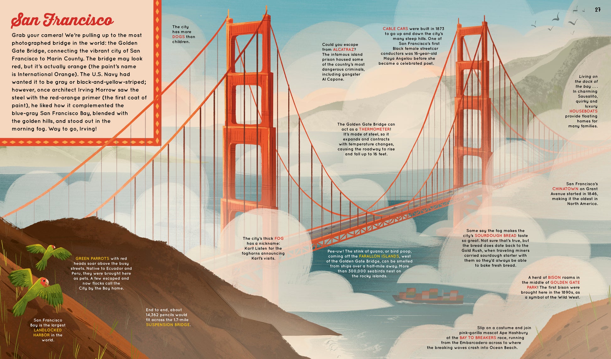 From the bright lights of L.A. to the natural majesty of the Redwood forests, this beautiful book is a deep dive into what makes California so great. Full bleed illustrations capture a sense of place, while pull-out spot artworks zoom in on the most fascinating facts.