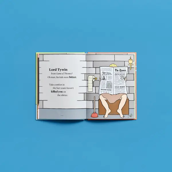 Following up on the success of Glenn Boozan’s viral gift book, There Are Moms Way Worse Than You: Irrefutable Proof that You Are Indeed a Fantastic Parent, the dad’s companion book sets out to prove to dads all over the world that, however bad they think they are at parenting, there are dads way worse. While Moms Way Worse highlighted creatures across the animal kingdom who are terrible at parenting, Dads Way Worse showcases fictional dads (and their parenting failures) across history and in popular culture. What dad would think he’s doing poorly when compared to Jack from The Shining, Tywin Lannister from Game of Thrones, or…Walter White from Breaking Bad?: