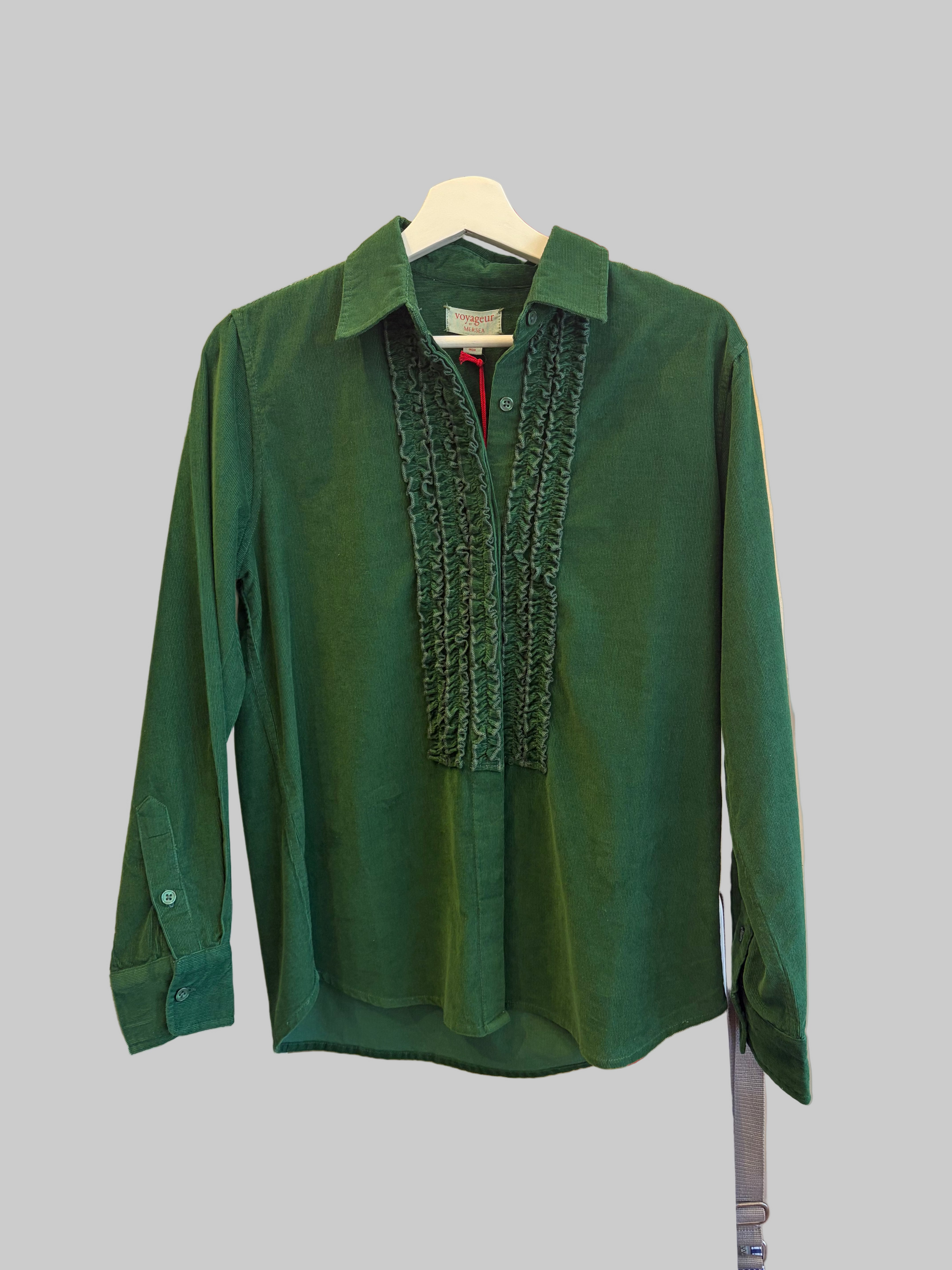 We like to play dress up and this piece is one you'll want for fun nights out or looking chic for a button-down kind of day. The ruffle placket chest details fit a classy tuxedo look with a twist for the modern woman. The next time you're heading out, layer your Tuxedo Ruffle for a fancy flare.